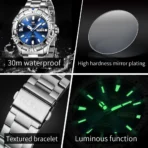 - Feature: Shock Resistant,Luminous,Auto Date,Complete Calendar,Water-Resistance,Week Display,Luminous Hands