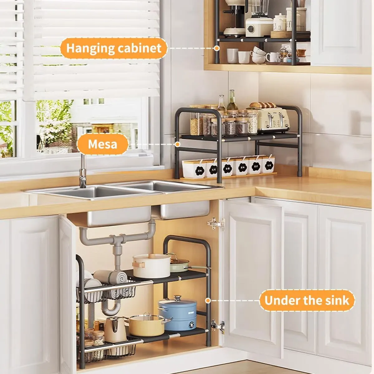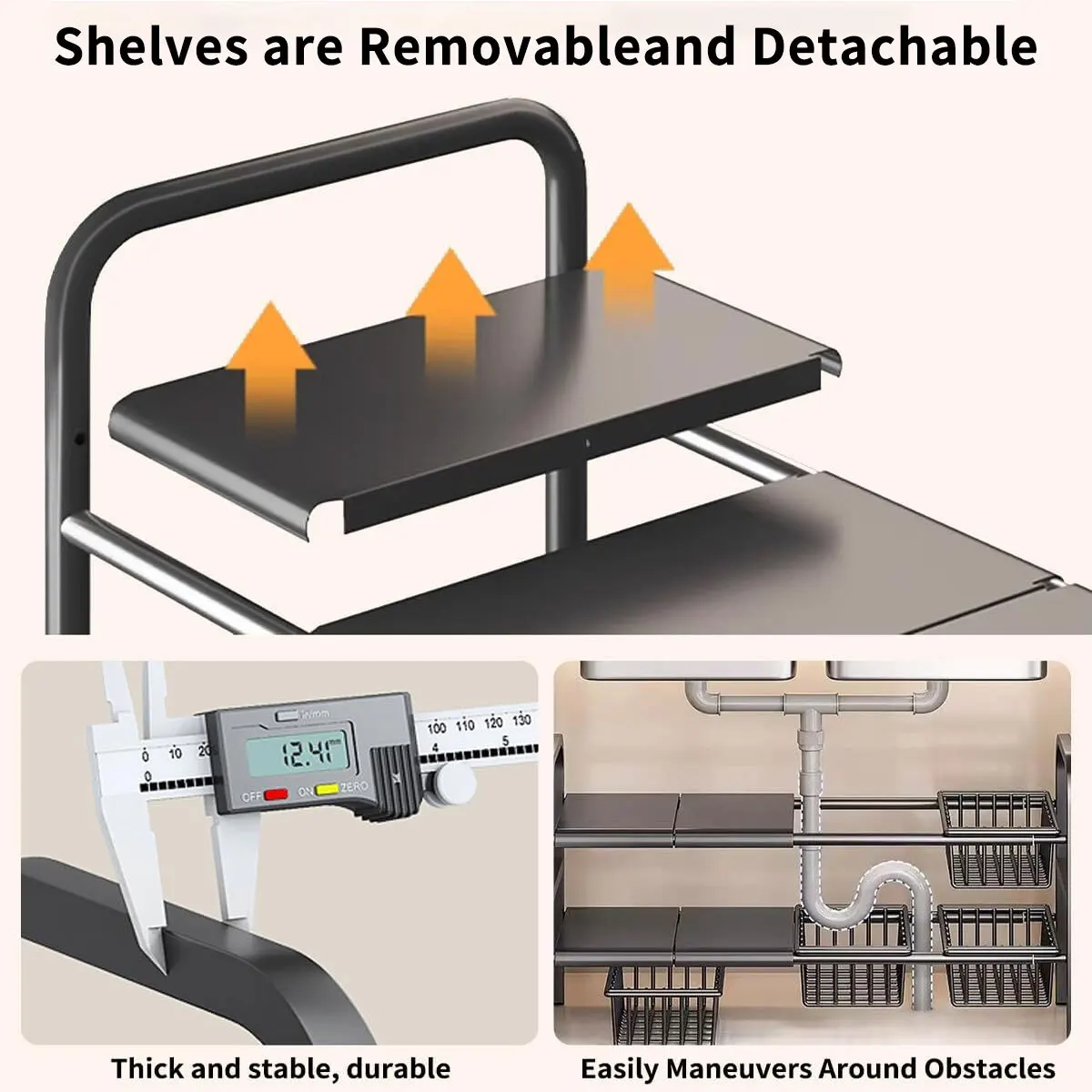 Versatile Use: Works great under sinks, in cabinets, or as a countertop shelf.